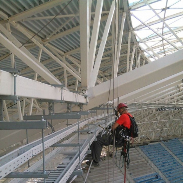 CARPATHIA ALPIN va ofera servicii de alpinism utilitar industrial in Cluj-Napoca dar si in tara executand o gama larga de lucrari la inaltime: montare reclame, caste luminoase, mesh-uri, spalari geamuri si pereti cortina, toaletari si taieri arbori in zone greu accesibile, trasari cabluri electrice si instalatii de iluminat si sonorizare, reparatii fatade, vopsirea pereti fatade blocuri, aplicare termosistem, protectii impotriva porumbeilor. si multe alte lucrari la inaltime. Folosim echipamente de lucru si protectie speciala, precum si materiale si scule profesionale pentru lucrul la inaltime. Lucram in conditii dificile din punctul de vedere al spatiului de manevra sau in perimetre in care instalarea unor schele ar fi chiar imposibila.